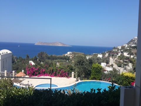Bodrum gümüşlükte deniz manzaralı, havuzlu yeni sitede, denize 3dk yürüme mesafesinde