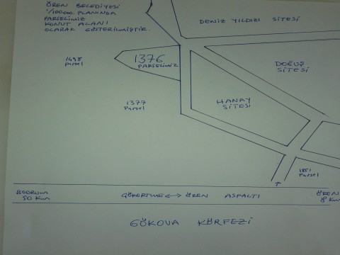 Ören-Çökertme asfaltı üzerinde,denize 150 metre kadar uzaklıktaki bir dönüm arazi sahibinden satılıktır.Arazi,üç yerleşik sitenin bitim ve birleşim yerinde,köşe başındadır.Ören Belediyesince 1/100000 planında konut alanı olarak gösterilmektedir.